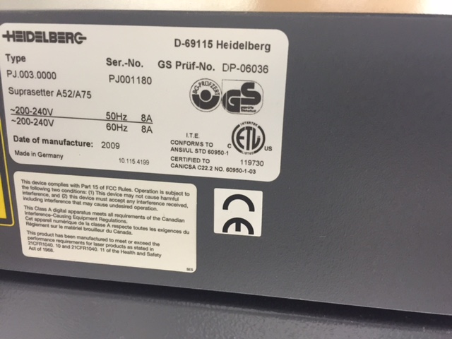 Heidelberg Supasetter A52/A 74 Thermal CTP Age 2009